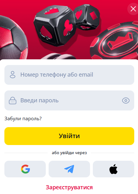 | ✉️ Вхід за електронною поштою | Використовуйте вашу електронну пошту або номер телефону як логін для входу. |